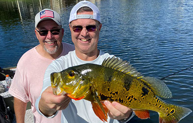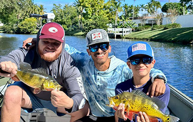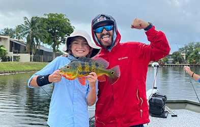 Miami fishing. On these trips, we typically target the Peacock Bass and oftentimes come across bycatch such as Largemouth Bass, Cichlids, Catfish, and even Snook and Tarpon. However, the Peacock Bass is what predominantly keeps the rods bent.